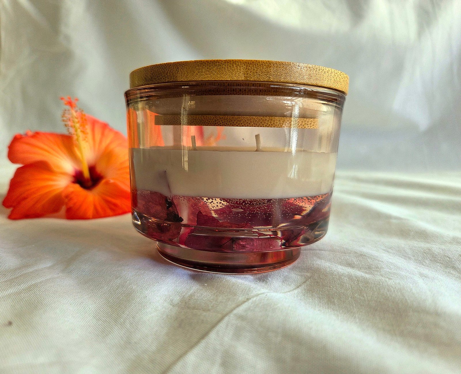 As your candle burns, watch the flowers dance in the warm glow, creating an ever-changing mandala of natural beauty.