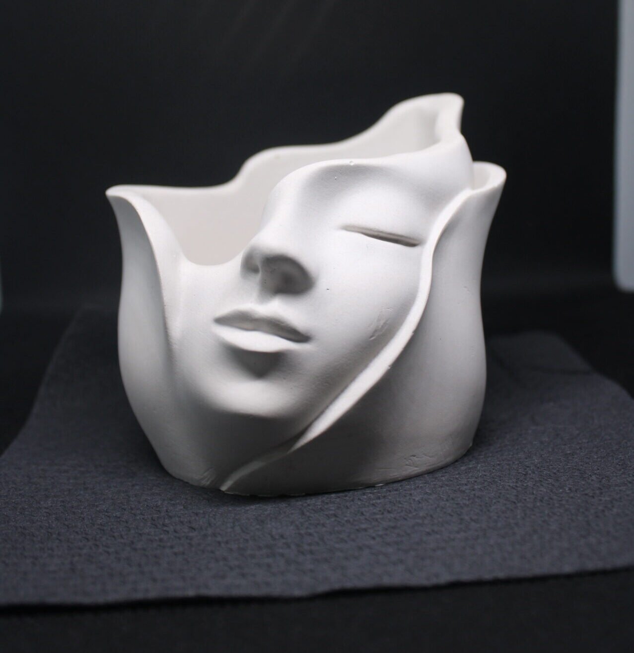 Nature-inspired decorative piece that brings the calming essence of zen gardens indoors. This thoughtfully crafted ornament creates a bridge between inner peace and outer beauty, making it an ideal addition to meditation spaces, reading nooks, or anywhere serenity is welcomed. The face ornament can be used uniquely as a decorative ornament, as a planter or as a candle holder. Either way, aesthetics are guaranteed!